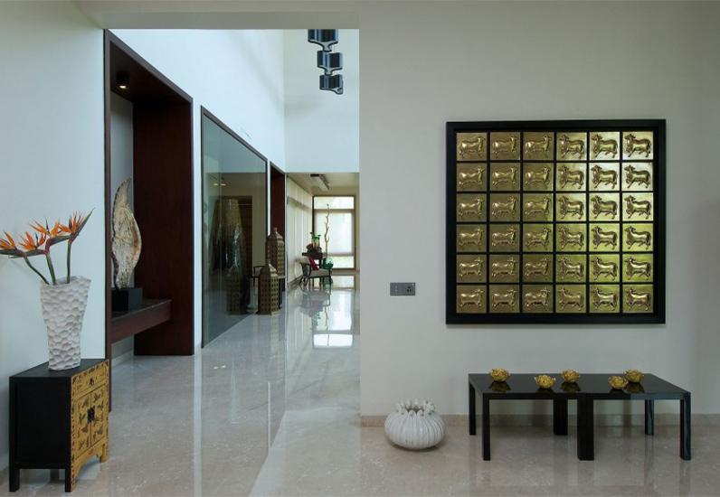 Lối đi liên thông giữa các khu vực được trang trí đẹp mắt với những món nội thất mang giá trị về phong thủy