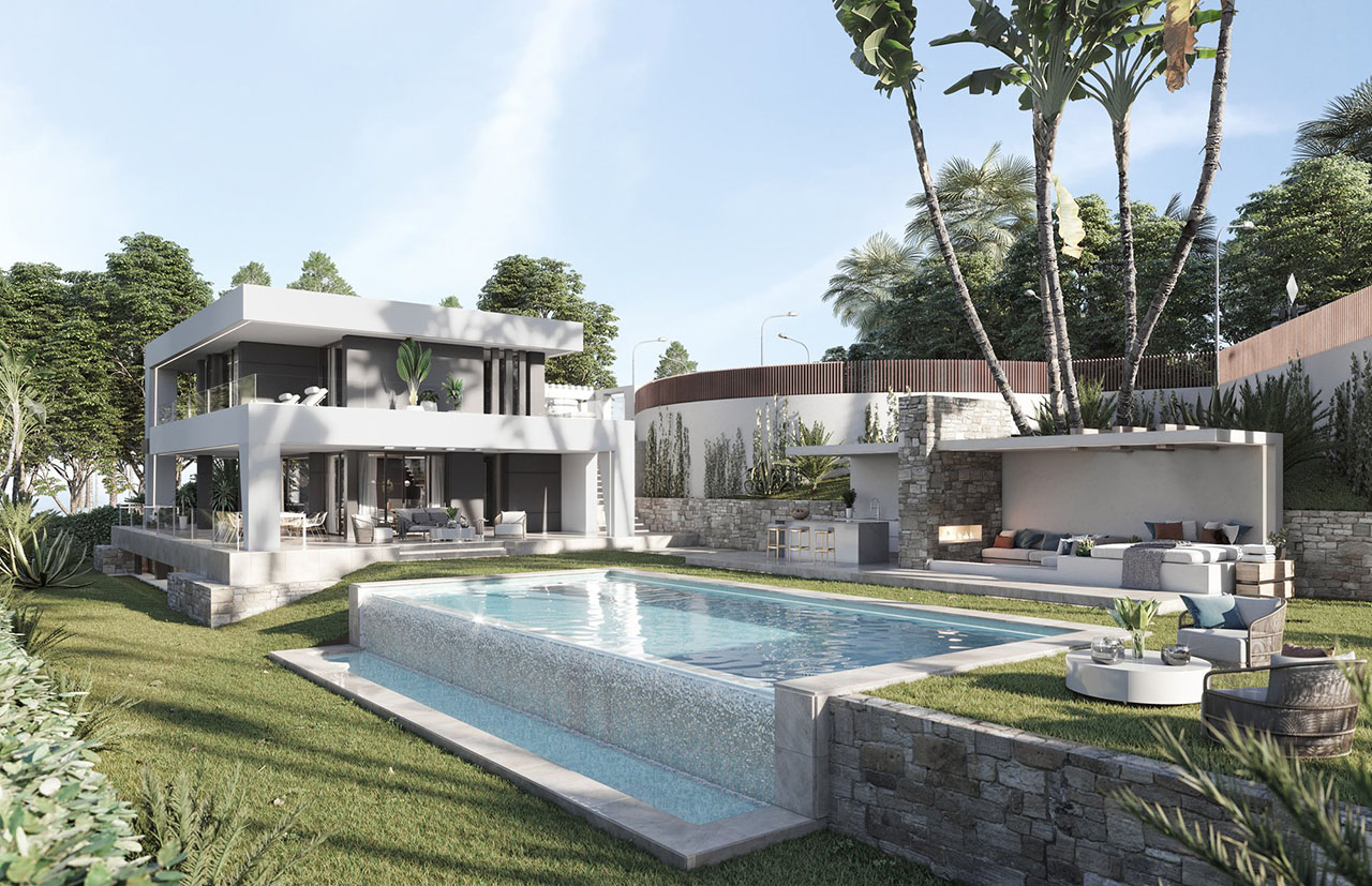 Nét đặc trưng của loại hình kiến trúc biệt thự này chính là 2 tầng có sân vườn, hồ bơi xây dựng theo phong cách Địa Trung Hải phóng khoáng và không gian mở từ ngoại thất đến nội thất. Màu tường kèm theo sử dụng màu sắc trang nhã, thanh lịch tạo nên sự sang trọng, hiện đại cho công trình.