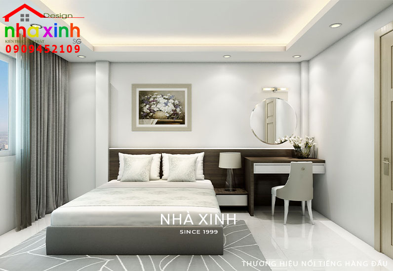 Song song 2 mảng đen trắng rất nghệ thuật, căn phòng ngủ master mang trọn vẹn những gì tinh túy nhất của 1 không gian riêng đúng nghĩa. Nội thất được Nhà Xinh phân bổ và thiết kế dựa theo kích thước không gian, hài hòa và tiện dụng. Ánh sáng chính là yếu tố quan trọng nhất để làm người ta quên đi sự chật chội của diện tích.