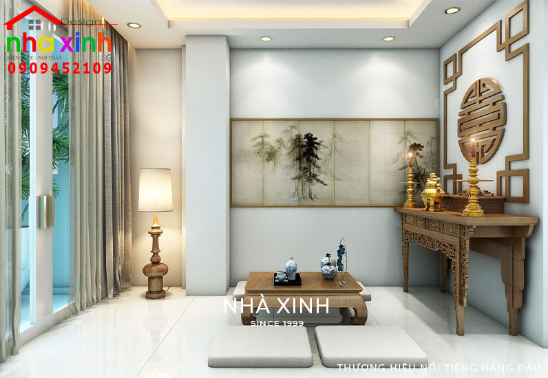 Sẽ thật thiếu sót nếu không đề cập đến tiểu cảnh sân vườn. Nó góp phần tạo nên nét trang nhã cho khu vực thờ phượng cũng như là góc thư giãn riêng của gia đình khi muốn tìm đến với hương đồng gió nội thiên nhiên.