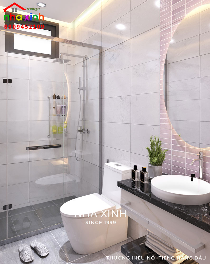 Phòng WC được thiết kế đơn giản và tinh tếMẫu thiết kế phòng wc cho căn nhà phố là việc lựa chọn khoa học, tường được ốp gạch, ốp họa tiết hay đá cẩm thạch cho phòng tắm sẽ phần nào giúp không gian phòng tắm có sự thay đổi diện mạo nhanh chóng. Màu sắc tươi sáng sẽ giúp đánh lừa thị giác về diện tích gợi đến cảm giác không gian rộng rãi hơn thực tế.