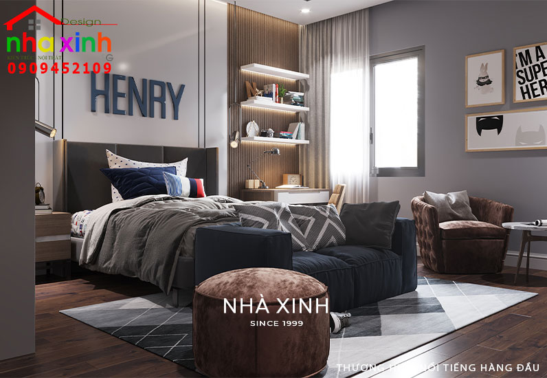 - 1.4 Thiết kế nội thất phòng ngủ con trai lớn nhà phố đẹp