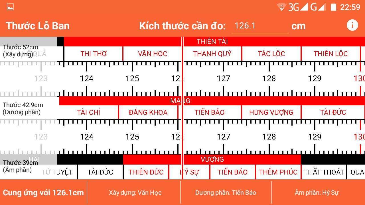 - Thước lỗ ban số 42,9cm (43cm): được dùng để đo khối đặc, và các chi tiết trong nhà nư: Kích thước phần nội thất giường tủ, bệ bếp.