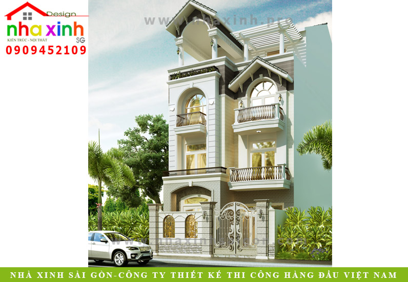 Công ty Nhà Xinh rất hân hạnh được nhận trọng trách thiết kế và thi công căn biệt thự đẹp 4 tầng cho gia đình anh Chiện thành một căn nhà thật đáng chiêm ngưỡng. Được xây dựng theo phong cách bán cổ điển, nếu quý khách đang muốn xây dựng cho tổ ấm của mình giống vậy thì hãy xem mẫu nhà biệt thự này là một mẫu ví dụ cụ thể.