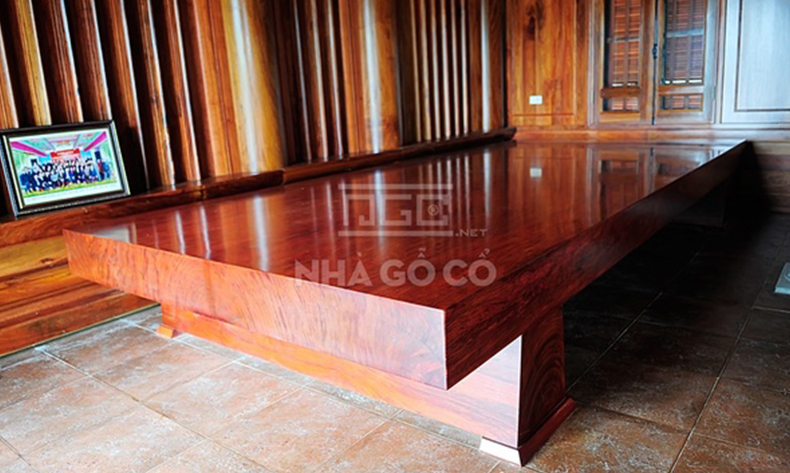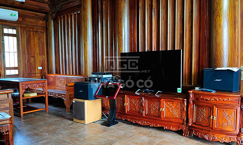 Gỗ hương là loại gỗ quý hiếm bậc nhất bởi tính bền, không bao giờ bị mối mọt hay giãn nở. Được biết, để hoàn thành căn nhà này, hàng trăm thợ lành nghề đã hoạt động hết công suất trong 4 tháng để hoàn thiện trước tết 2015.