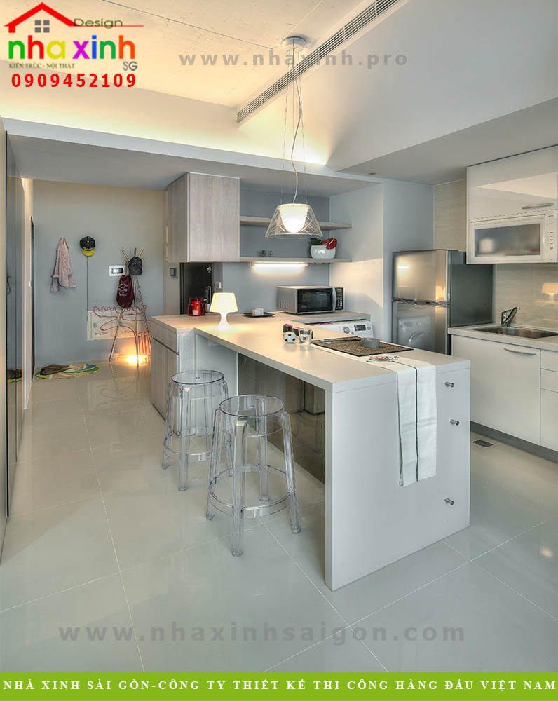 Hãy làm gọn nội thất hết sức có thể, tốt nhất bạn chỉ nên sử dụng những món đồ nội thất cơ bản, cần thiết. Không nên ôm đồm quá nhiều đồ trang trí sẽ khiến căn nhà trở nên chật chội và rối mắt. Đảo bếp nhỏ nhắn, xinh xắn, nhưng vẫn được trang bị đầy đủ thiết bị phục vụ cho quá trình nấu nướng. Vẫn có một quầy bar để người nội trợ xử lý những thức ăn nhẹ hay ngồi uống một cốc rượu cùng người thân sau những bữa ăn gia đình. Xem thêm mẫu thiết kế biệt thự đẹp 2022