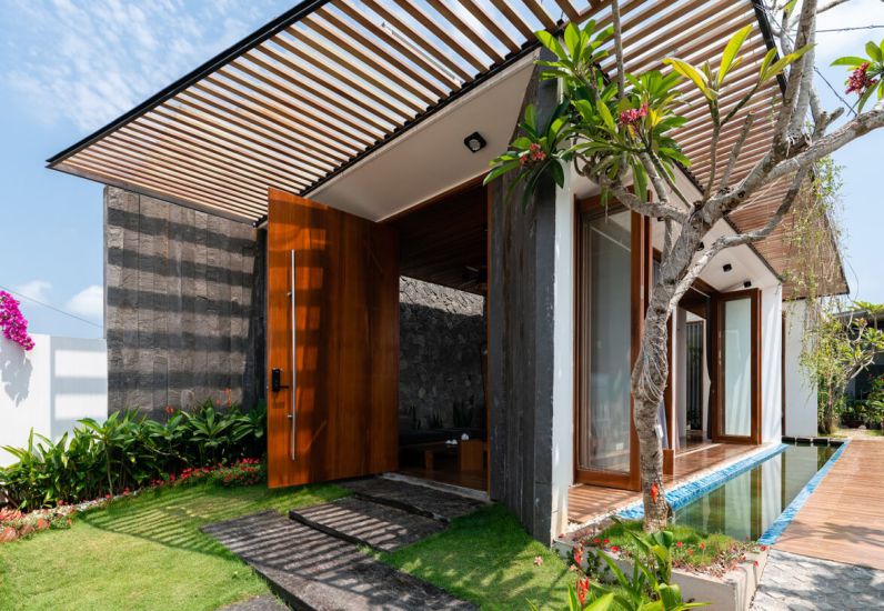 Mẫu nhà cấp 4 với kiến tạo từ chất liệu gỗ kết hợp với tường trắng hiện đại