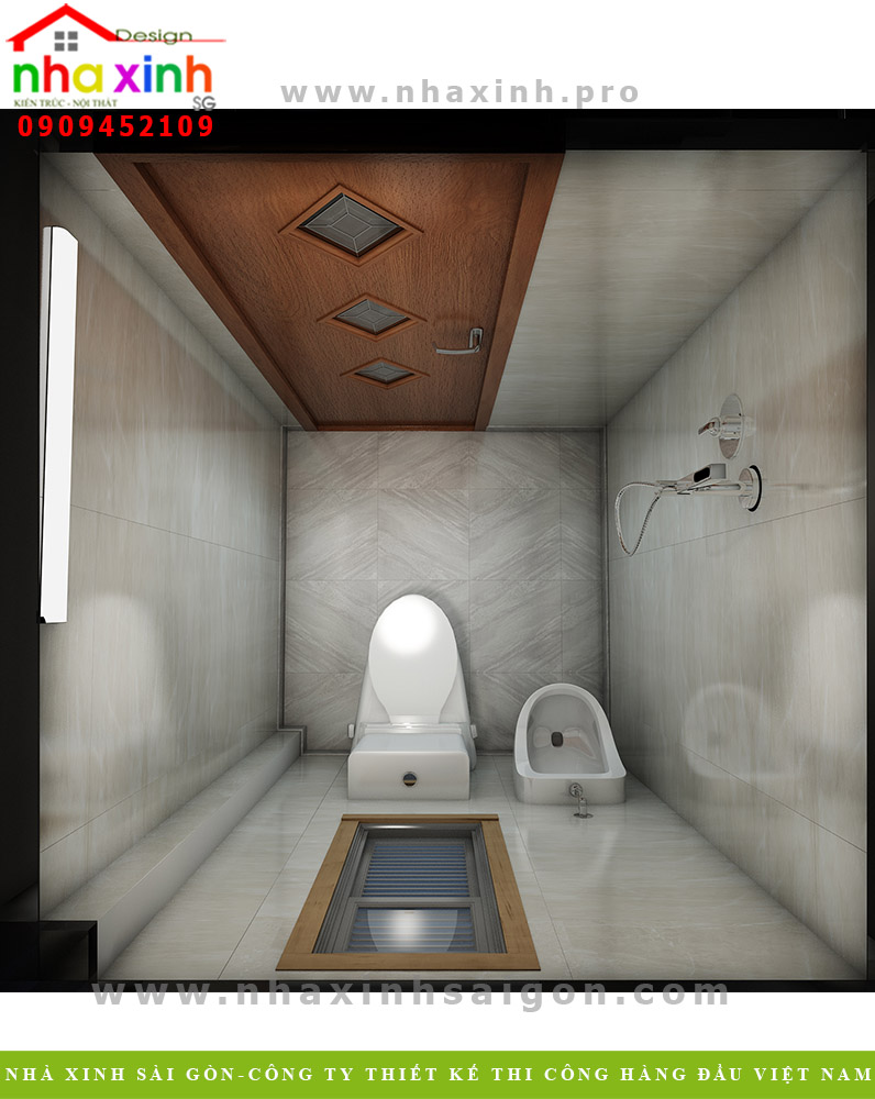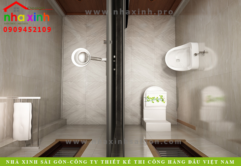 Khác với kiểu nhà tắm thông thường, chúng được tiết chế ngăn thành hai phòng nhằm giữ độ sạch sẽ khi tiếp xúc với hai gian phòng cùng một lúc. Những chiếc kệ đóng âm tường khá là tiện lợi và đẹp mắt. Nội thất trắng cao cấp như lavabo, bệ xí, khóa nước...giúp không gian nhà ở của bạn càng gia tăng thêm nét thẩm mỹ và hiện đại.