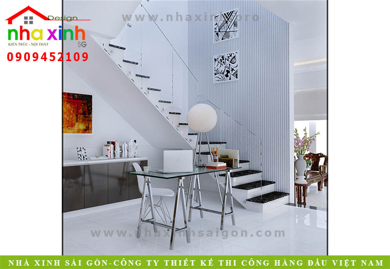 Cầu thang là một nhân tố quan trọng để kết nối các không gian giữa các tầng lầu trong ngôi nhà của bạn. Vì vậy nó xứng đáng có một mẫu thiết kế đẹp như một vật trang trí hay như một tác phẩm nghệ thuật đẹp mắt chứ không chỉ là một chiếc cầu thang bình thường đảm nhiệm việc giúp đỡ bạn di chuyển lên xuống giữa các tầng trong nhà. Chân ốp đá đen granite kết hợp với lan can kính trong suốt, tạo nên một vẻ đẹp thật hiện đại và mới lạ.