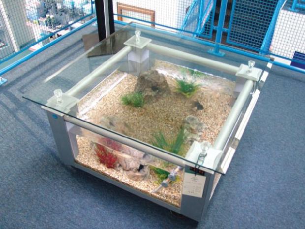 Bạn có thể tận hưởng cảm giác vừa uống nước vừa ngắm cá với thiết kế bể thủy sinh lạ mắt này.