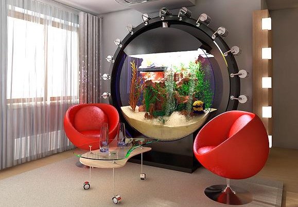 Ngoài những thiết kế treo tường hay kết hợp nội thất, bạn cũng có thể trang trí căn phòng nhà bạn bằng những bể cá với thiết kế độc đáo lạ mắt tùy theo từng không gian nhà xinh của bạn.