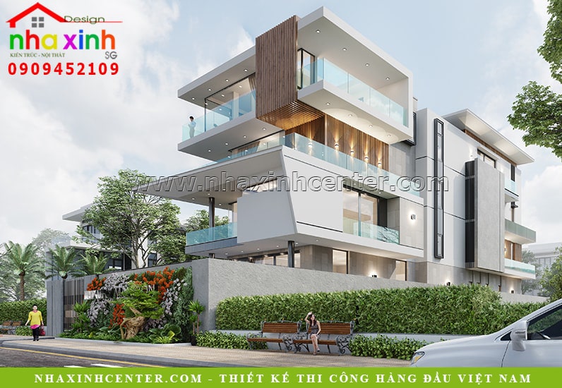 Tỏa lạc với không gian sống khu đất, gia chủ đã liên hệ Nhà Xinh để lên ý tưởng cho căn nhà với phông cách hiện đại. Ngôi biệt thự thân thiện với môi trường tự nhiên mảng xanh thiên nhiên. Cách sắp xếp cây xanh được cân đối với ngoại thất ngôi nhà để tạo sự tươi mát không làm mất đi phối cảnh tổng thể ngôi nhà.