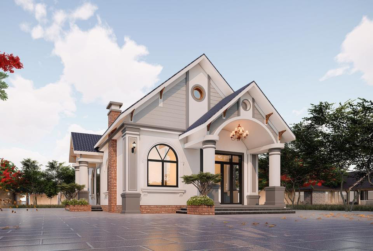 - 1.10 Nhà mái thái giả biệt thự sân vườn 1 tầng