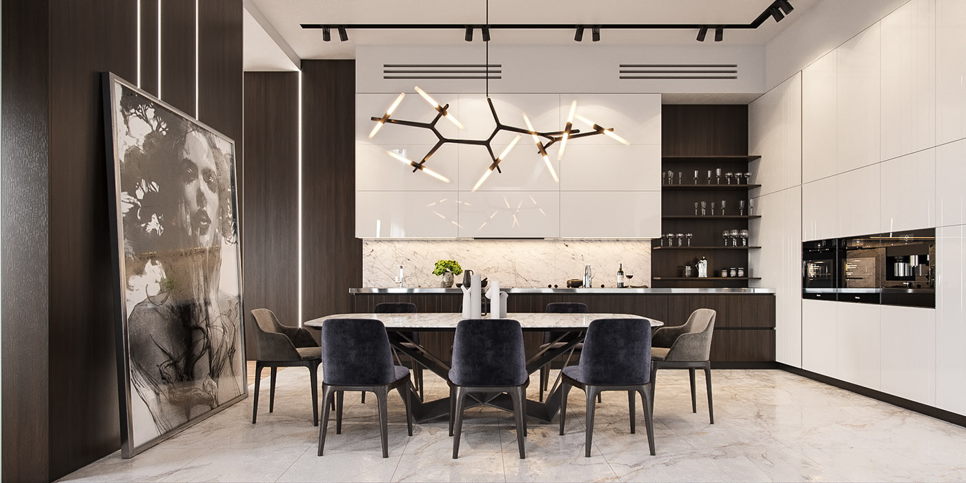 Nội thất phòng bếp rộng cho căn hộ cao cấp