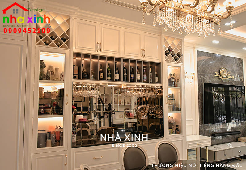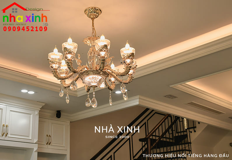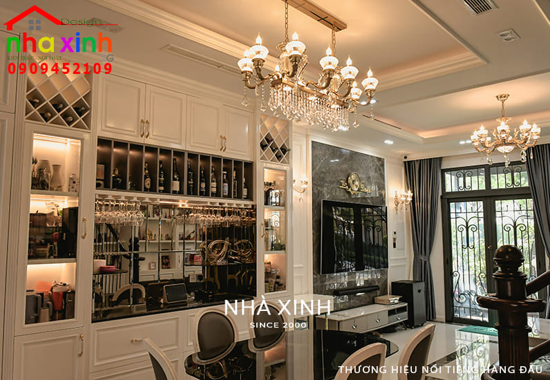 Không gian nội thất phòng khách bếp thiết kế Châu Âu