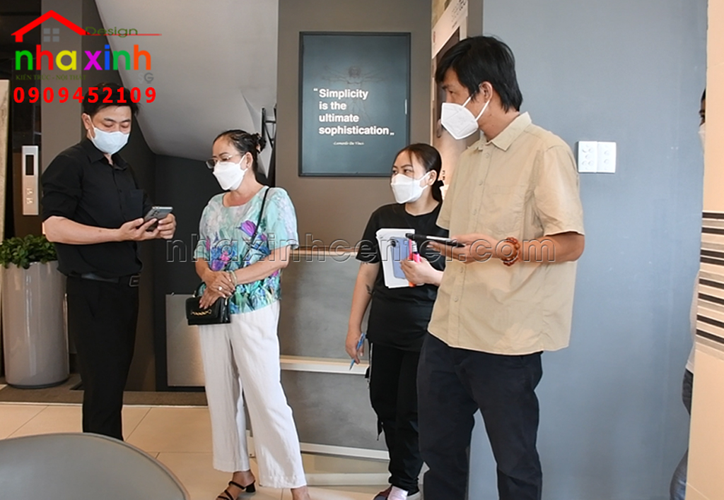 - 4 KTS Nhà Xinh cùng với khách hàng xem sản phẩm gạch ý ốp tường