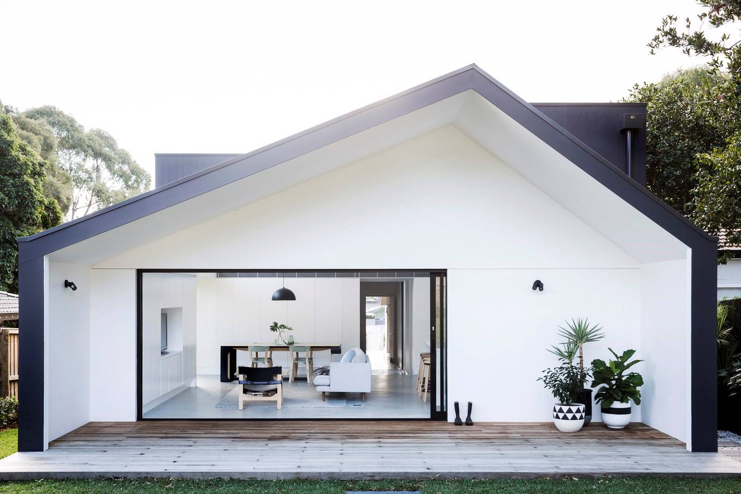 Công trình nhà cấp 4 đẹp nổi bật với cách thiết kế mở cùng với hình khối hình tam giác độc đáo, theo lối kiến trúc hiện đại. Với lối kiến trúc này rất thích hợp cho những gia chủ thích phong cách mới lạ, độc đáo nhưng rất đơn giản, tinh tế. Căn nhà sử dụng những mảng kính lớn để mở rộng không gian, cùng với đó là hòa hợp với thiên nhiên. Khi cần thiết có thể kéo những tấm màn cửa để tạo sự kín đáo.